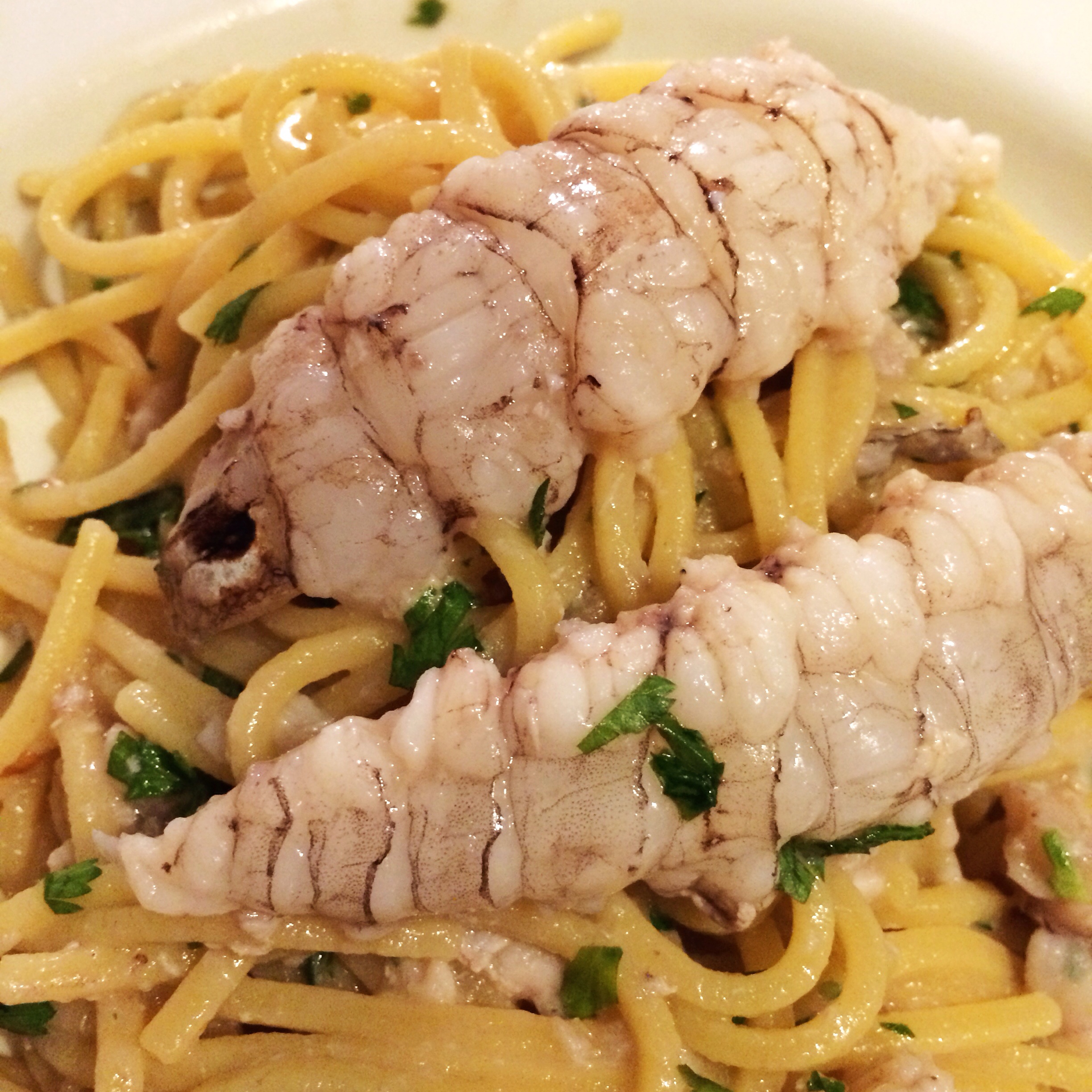 A canocchia é um crustáceo muito feio que só existe no mar Adriático. Toda essa feiura, porém, é compensada pela delicadeza da sua carne – que é única: doce e saborosa. Na verdade, de tão delicada, a carne se desfaz muito facilmente e, por tal razão, vira naturalmente um molho perfeito para uma belíssima massa, que como de joelhos todas as vezes.