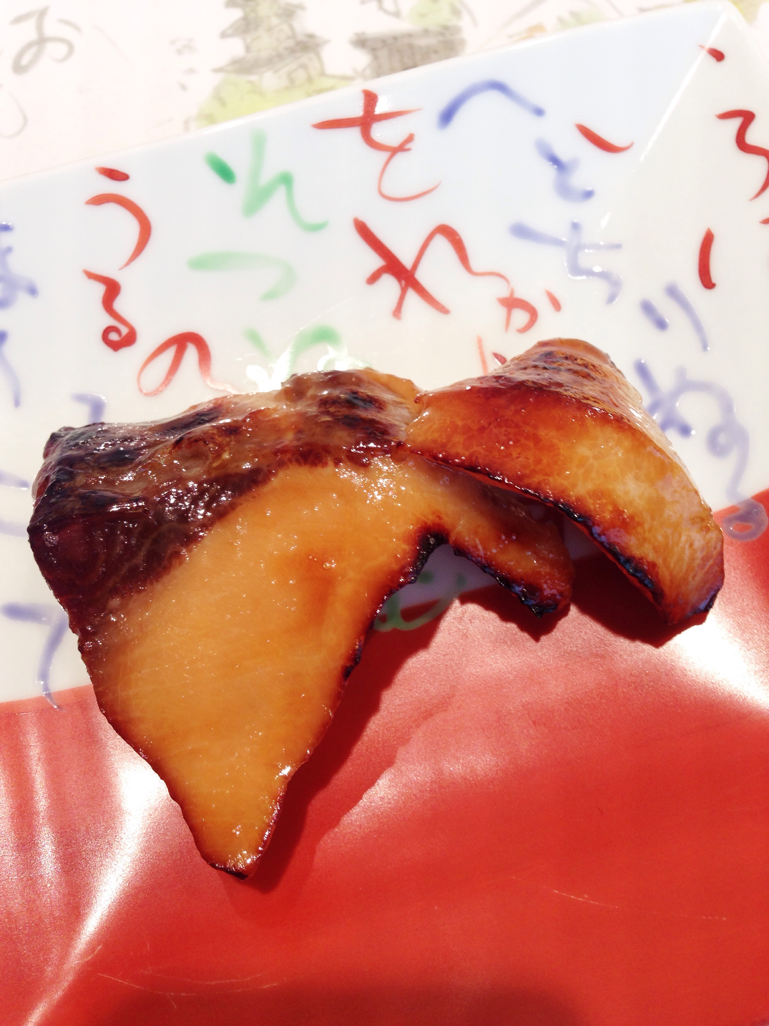 E, logo depois, a brincadeira fica séria: um EXCEPCIONAL olho-de-boi marinado por um dia com molho yuanji (típico da região de Kyoto, feito com saquê doce, e inventado pelo criador da cerimonia do chá) e grelhado ao momento. A partir de então não consegui mais parar de sorrir.