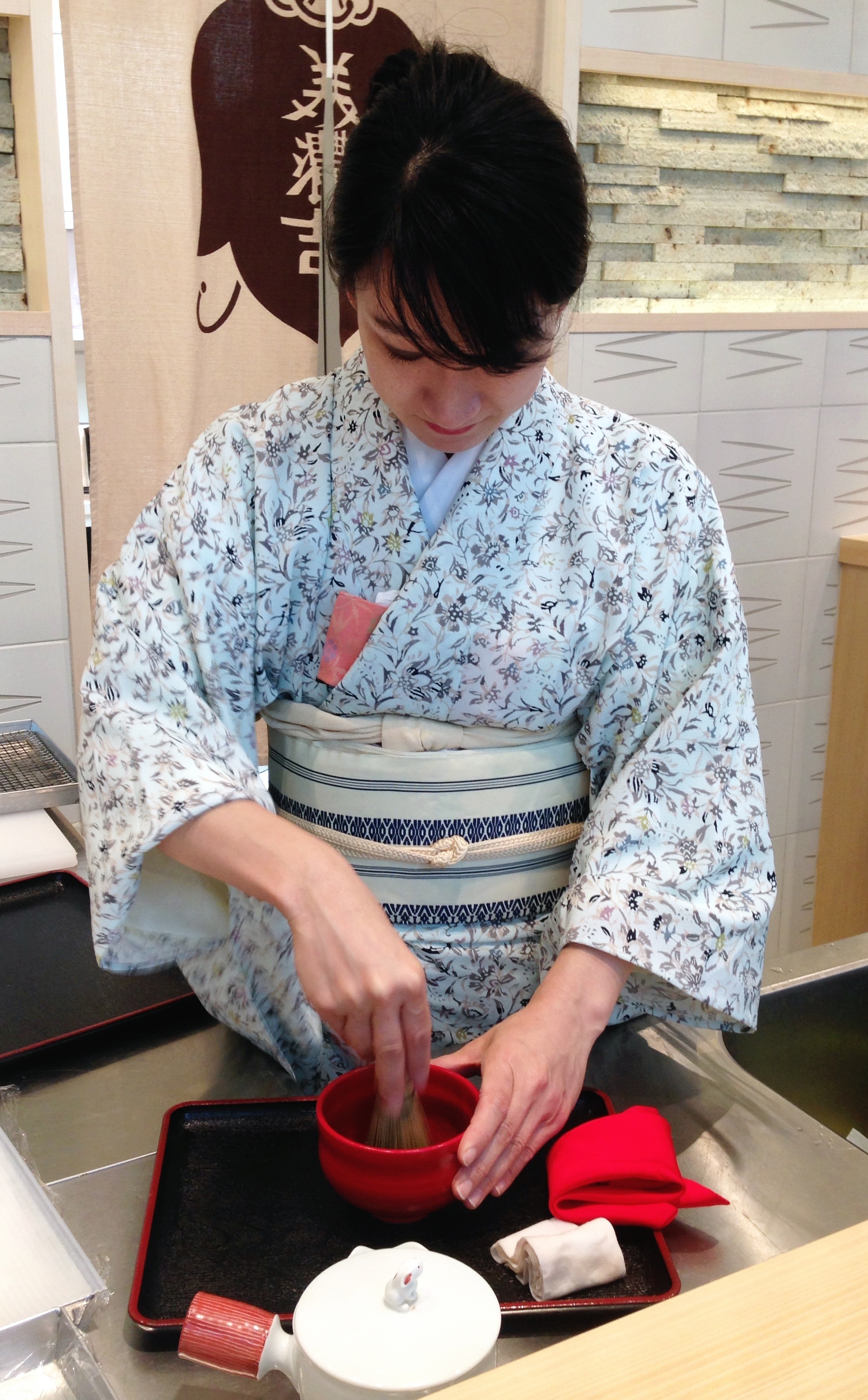para acompanhar o chá. Este, não tinha nada a ver com aqueles saquinhos suspeitos que compramos no supermercado; era um lindo pó verde-vivo que a minha garçonete preferida – a Keiko, que mora em Bologna e vai virar minha melhor amiga – preparou, literalmente, com toda a cerimônia.